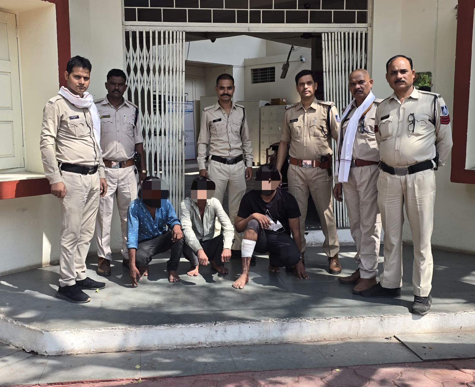 01.रोशन पिता रवि नंदेश्वर, निवासी संत बालिनाथ नगर, उज्जैन व 02.रितेश पिता दिनेश पोरवाल, निवासी वल्लभ नगर, उज्जैन 03.रवि पिता प्रभुलाल वाडिया, निवासी संत बालिनाथ नगर, उज्जैन बताया गया। घटना को राहगीरों द्वारा भी देखा गया है। पकड़े गए तीनों युवकों को गिरने के कारण हाथ-पैर में चोटें आईं हैं। तत्पश्चात माधवनगर थाने की मोबाइल टीम व चैकिंग अधिकारी मौके पर पहुंचे और तीनों आरोपियो को थाने लाया गया। संबंधित धाराओं में मामला दर्ज कर अग्रिम वैधानिक कार्यवाही की गई है।