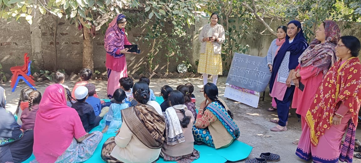 आंगनवाड़ी में वीर बाल दिवस पर नन्हों ने लिया खेलों का आनंद