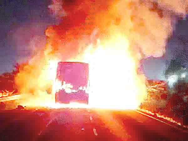 इंदौर से पुणे जा रही एक यात्री बस में अचानक आग लग गई। देखते ही देखते आग ने विकराल रूप ले लिया। ऊंची-ऊंची लपटें उठने लगी।
