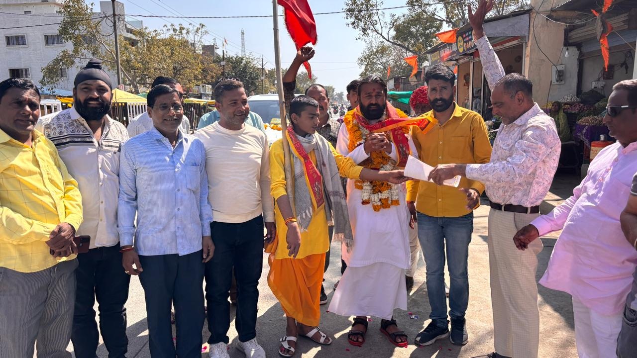 गौ माता को राष्ट्र माता का दर्जा दिलाने के पैदल यात्रा करने वाले संत का किया स्वागत