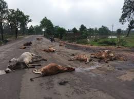 उज्जैन। आगररोड पर एक बार फिर रविवार रात बस चालक ने गाय को कुचल दिया, घायल गाय को देख लोगों की भीड़ जमा हो गई, मार्ग पर दुर्घटनाओं में मरी गायों को लेकर कुछ दिन पहले ही गौसेवा संस्था ने चक्काजाम कर कार्रवाई की मांग रखी थी।