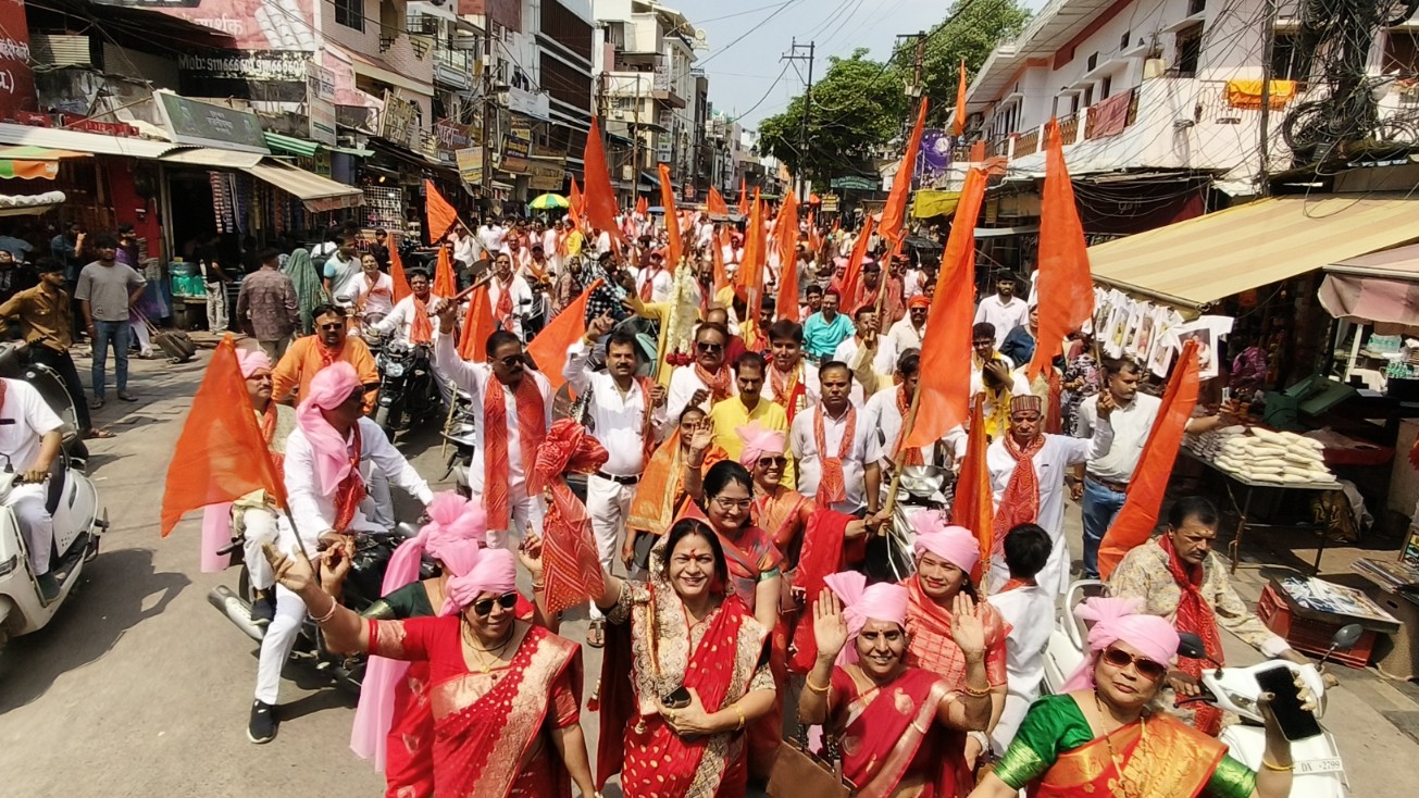 यात्रा में शामिल ब्राह्मण समाज के लोग केसरिया ध्वज लहराते हुए “जय परशुराम” के उद्घोष कर रहे थे। कई श्रद्धालु हाथों में भगवान परशुराम का प्रतीक शस्त्र फरसा लिए हुए नजर आए। वहीं महिलाओं ने लाल साड़ी और केसरिया साफा पहनकर चल समारोह की शोभा बढ़ाई, जबकि पुरुष सफेद वस्त्रों में अनुशासित रूप से शामिल हुए।