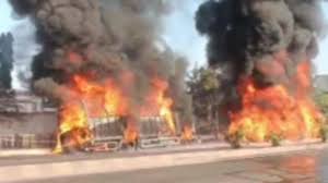 इंदौर।  इंदौर के पास मानपुर क्षेत्र में मुंबई-आगरा फोरलेन पर सोमवार सुबह दो ट्रकों में आग लग गई। इसकी लपटें और धुएं का गुबार एक किमी दूर से दिखाई दे रहा था, जिससे सड़क पर लंबा जाम लग गया और दोनों ओर से यातायात पूरी तरह बाधित हो गया। फिलहाल, आग लगने के कारणों का पता नहीं चल सका है।घटना की सूचना मिलते ही पुलिस और दमकल विभाग की टीमें मौके पर पहुंच गईं। दमकल कर्मियों ने आग पर काबू पाने का प्रयास शुरू किया, वहीं पुलिस ने जाम में फंसे वाहनों को हटाकर यातायात व्यवस्था बहाल की। आग लगने के बाद कुछ समय के लिए इलाके में अफरा-तफरी का माहौल बन गया।धुआं करीब एक किमी दूर से दिखाई दे रहा था।दोनों ही ट्रक कुछ ही देर में पूरी तरह जल गए।राह चलते लोगों ने वीडियो बनाकर सोशल मीडिया पर डाल दिया।आग कैसे लगी अभी इसका पता नहीं लग पाया है।हादसे के दौरान बड़ी संख्या में लोग वीडियो बनाते हुए दिखाई दिए।एक ट्रक में केमिकल के ड्रम भरे हुए थे।