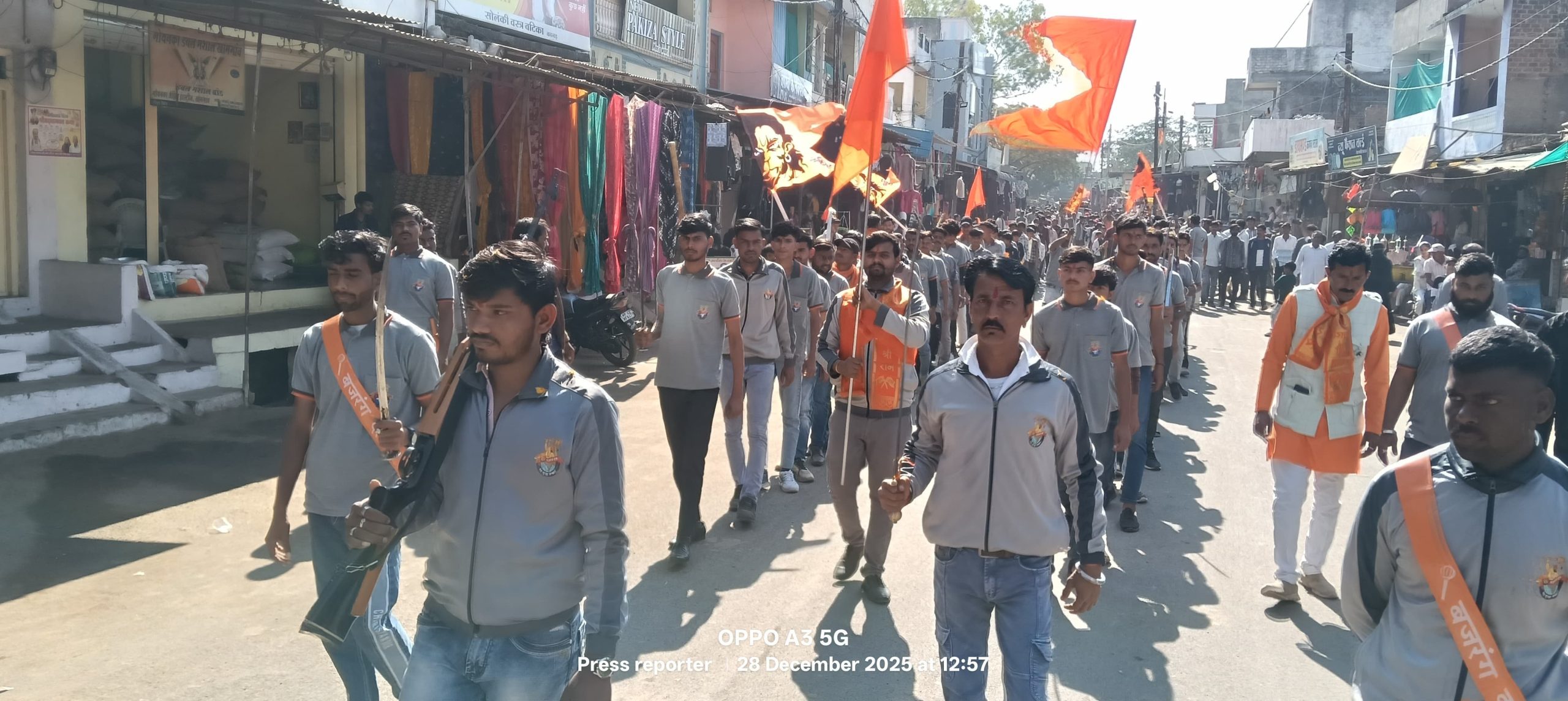 विश्व हिंदू परिषद प्रांत मंत्री मुख्य वक्ता विनोद शर्मा ने आगे कहा कि गीता जयंती के उपलक्ष में विश्व हिंदू परिषद बजरंग दल शौर्य यात्रा निकालता है क्योंकि विश्व हिंदू परिषद बजरंग दल ने ही बाबर के नाम का कलंक के नाम को मिटया। जिस प्रकार समाज में शांति स्थापित करने के लिए पुलिस फ्लैग मार्च निकालती हैं उसी प्रकार वर्ष में एक बार हिंदू समाज का संबल बढ़ाने के लिए एवं विधर्मियों को दिखाने के लिए शौर्य यात्रा निकालना आवश्यक है। उन्होंने आगे कहा कि जिहादियो को पहचानना होगा वह हम सब के बीच रहते है बच्चों के स्कूल बस का ड्राइवर,पंचर वाला, इलेक्ट्रीशियन ठेले वाला, मिस्त्री या किसी भी रूप में हो सकता है उसकी पहचान सुनिश्चित कर प्रखंड व जिले के जिम्मेदार लोगों को बताएं बजरंग दल उन्हें अपनी भाषा में उत्तर देगा। देश में बजरंग दल विधर्मियों का काल है जो समय-समय पर हिंदुओं पर अत्याचार के विरोध स्वरूप प्रतिकार करते हुए विधर्मियों को मुंह तोड़ जवाब देता है । विहिप बजरंग दल का शौर्य यात्रा सरस्वती कानड़ बस स्टैंड से प्रारंभ हुई जो नगर के प्रमुख मार्गो से निकली। शौर्य यात्रा का समापन बस स्टेण्ड परिसर में हुआ। शौर्य यात्रय का नगर में जगह-जगह पुष्प वर्षा कर स्वागत सम्मान किया गया। शौर्य संचलन कार्यक्रम का संचालन विश्व हिंदू परिषद जिला मंत्री जितेंद्र सिंह राठौड़ ने किया। बजरंग दल के शौर्य यात्रा कार्यक्रम को लेकर कानड़ थाना प्रभारी के साथ अन्य पुलिसकर्मी तैनात रहे।