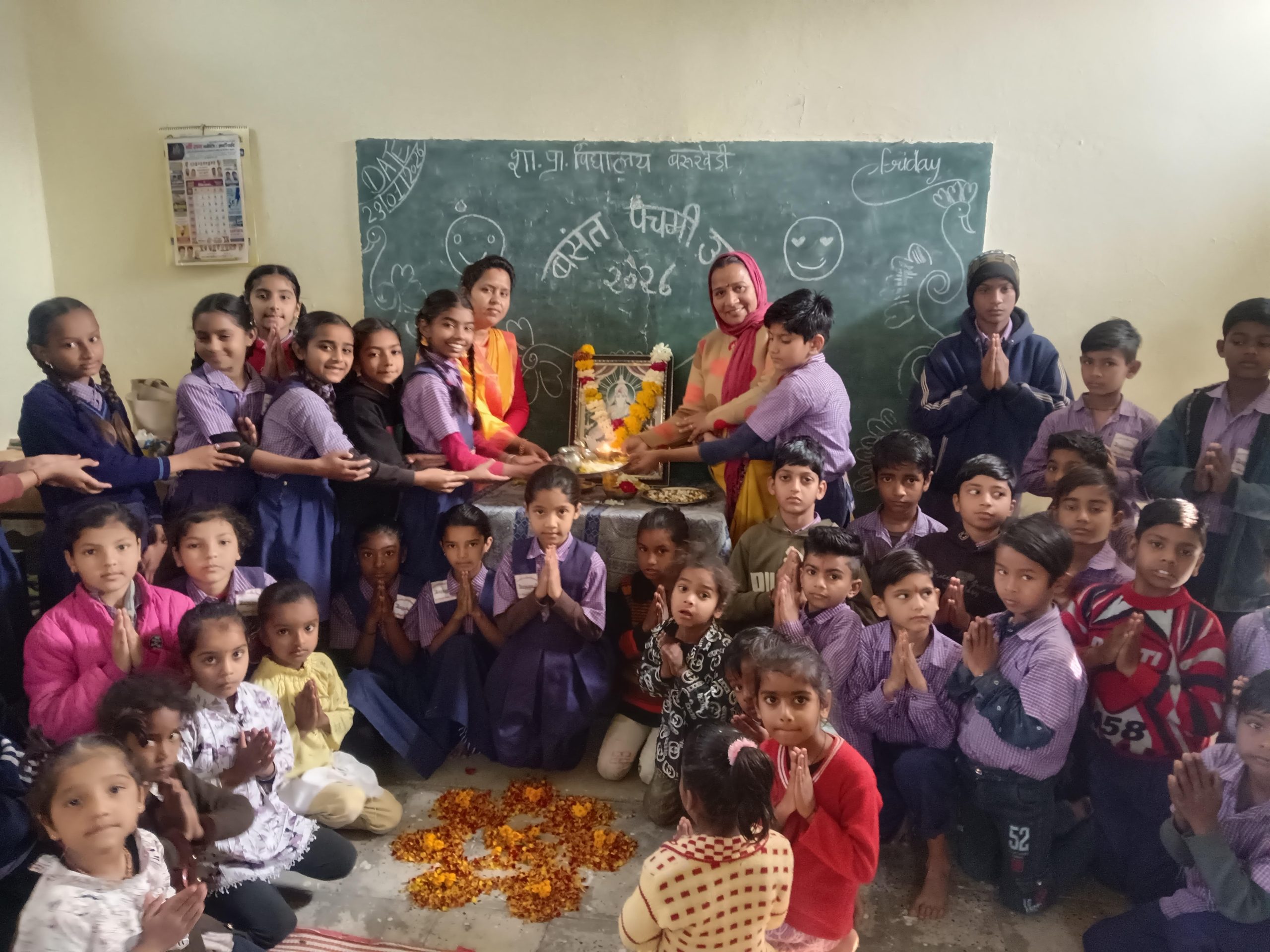 बसंत पंचमी बच्चों ने मां सरस्वती की पूजा अर्चना कर मांगा आशीर्वाद