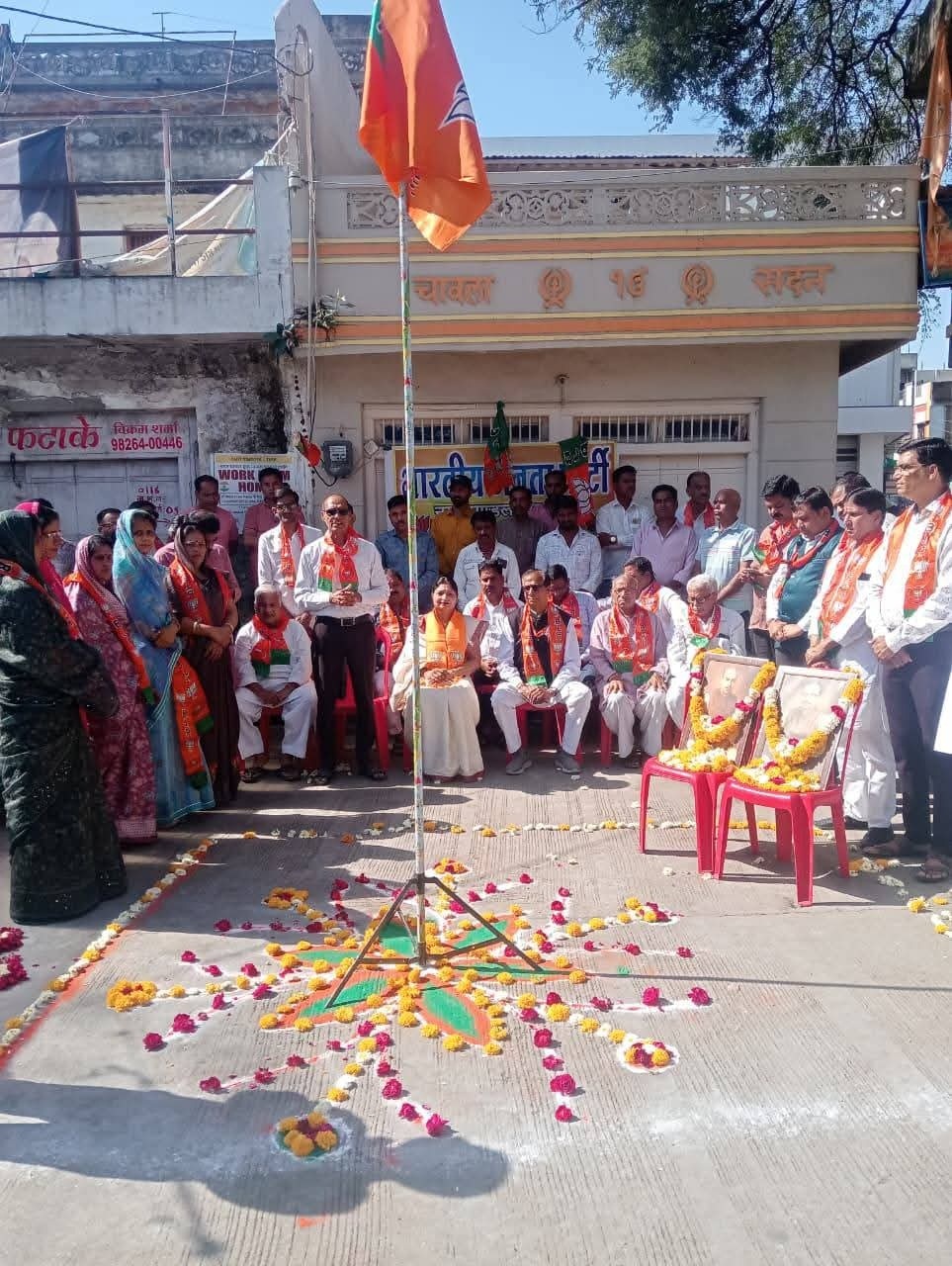 महिदपुर रोड। रेस्ट हाउस पर डॉक्टर श्यामा प्रसाद मुखर्जी, डॉ.दीनदयाल उपाध्याय के चित्र पर माल्यार्पण कर भाजपा का स्थापना दिवस मनाया गया। इस अवसर पर भा ज पा मंडल अध्यक्ष गुरु चरण सिंह चौहान ने इस अवसर पर कहा कि बीजेपी का हर कार्यकर्ता ‘अंत्योदय’ और ‘समृ द्ध भारत’ के संकल्प के प्रति समर्पित है। पार्टी पदाधिकारियों और कार्यकतार्ओं नागदा चौराहे पर आतिश बाजी कर एक दूसरे को मि ठाई खिलाकर हर्ष व्यक्त किया। इस दौरान कार्यकतार्ओं ने प्रधान मंत्री नरेंद्र मोदी के ‘विकसित भारत’ के विजन को जन-जन तक पहुँचाने की शपथ ली गई । मण्डल अध्यक्ष गुरचरण सिंह चौहान जिला उपाध्यक्ष संदीप व्यास, मंडल महामंत्री शंभू शर्मा , मंडल उपाध्यक्ष रमेश मीणा , राजेश काठेड़, हरीश बैरागी गोपाल बैरागी,हरिसिंह चुंडा वत, राजेंद्र सिसोदिया, भूपेश कसे रा, प्रकाश शर्मा, महेंद्र सिंह, कुबेर सिंह, बाबूदास बैरागी, मुकेश शर्मा आदि कार्यकर्ता मौजूद रहे। जानका री मंडल मीडिया प्रभारी योगेंद्र सिंह शाक्य ने दी।
