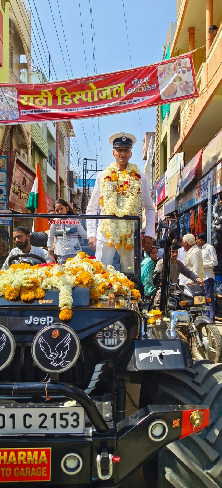 महिदपुर। नगर के प्रतिभाशाली छात्र देवीसिंह मंडोर के पुत्र भाई वैभव सिंह मंडोर ने विशाखापट्टनम से मर्चेंट इंडियन नेवी की ट्रेनिंग 6 माह की पूर्ण की। आपके नगर आगमन पर ऐतिहासिक स्वागत नगर के गणमान्य नागरिक, जनप्रतिनिधियों एवं नगर वासियों ने जमकर स्वागत किया उनकी ट्रेनिंग पर नगर वासियों को गर्व है।