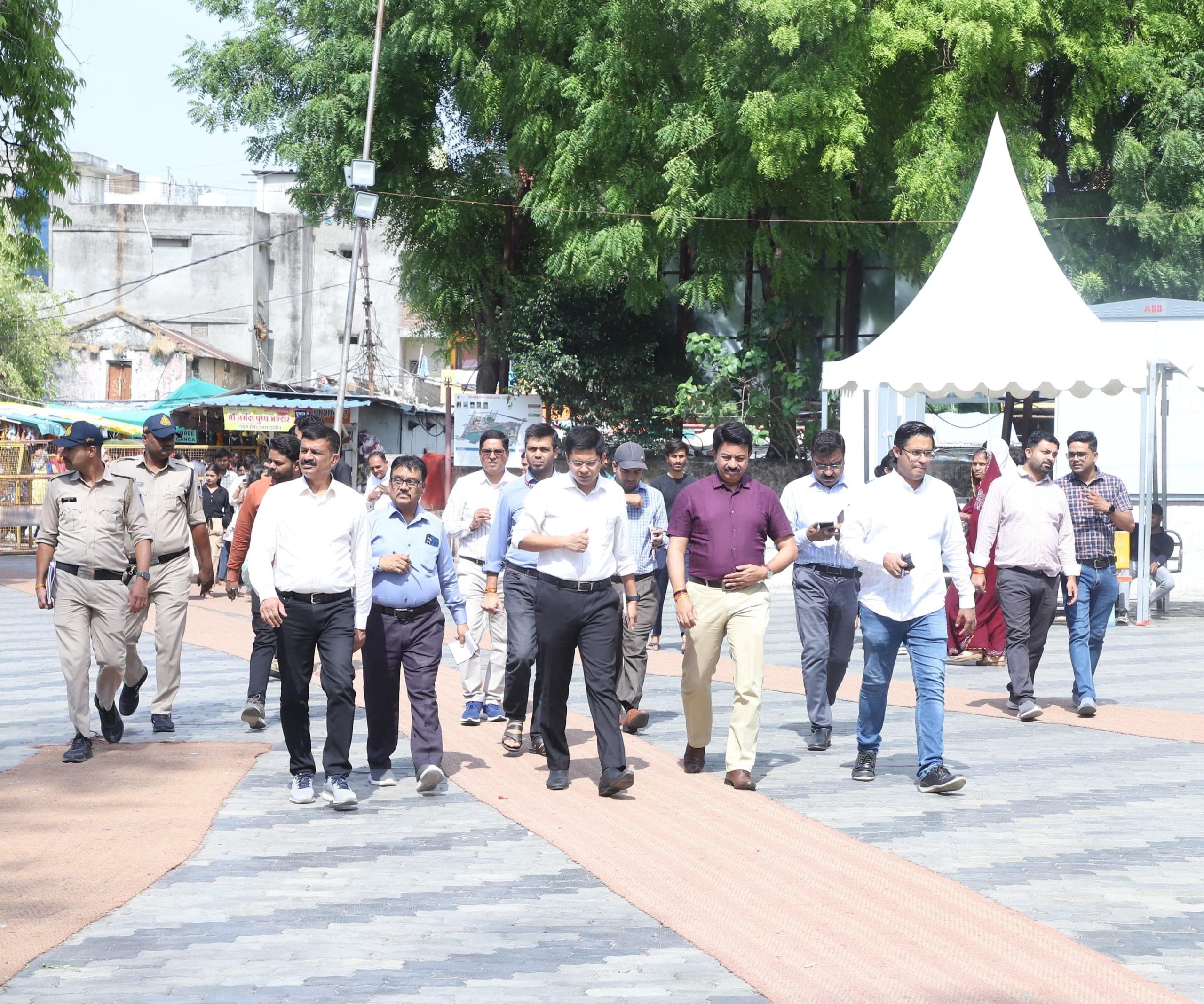 महाकाल मंदिर की व्यवस्था के संबंध में प्रशासक प्रथम कौशिक ने मंगलवार को अधिकारियों के साथ बाहरी एवं आंतरिक क्षेत्र का निरीक्षण किया।