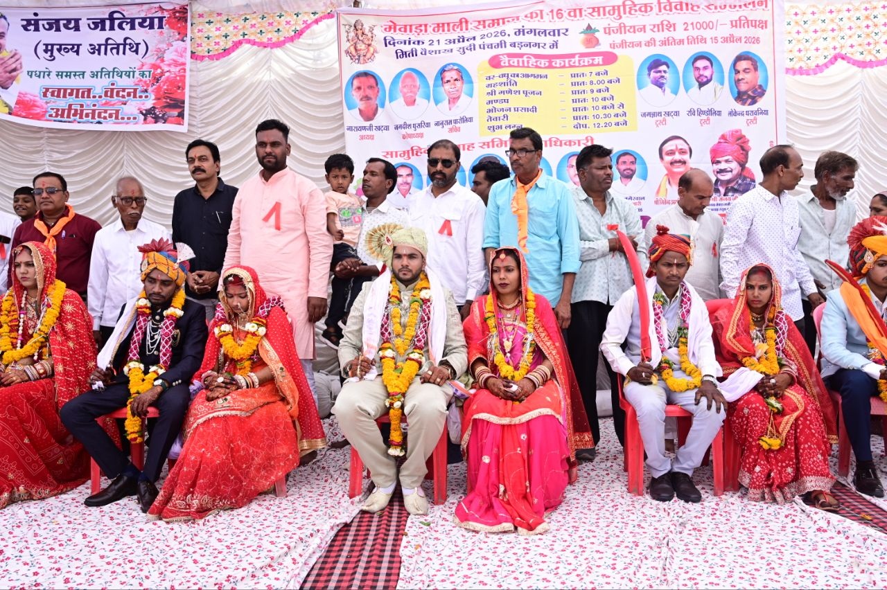 समाज अध्यक्ष नारायण खटया एवं कोषाध्यक्ष जगदीश धुसरिया ने समाज को कड़ा और स्पष्ट संदेश देते हुए कहा कि समाज का वास्तविक उत्थान केवल बड़े आयोजनों से नहीं, बल्कि वैचारिक क्रांति और सामूहिक शक्ति से संभव है। यह 16वां सामूहिक विवाह सम्मेलन इस बात का प्रमाण है कि हमारा समाज अब दिखावे की राजनीति और फिजूलखर्ची से ऊपर उठकर, एकता के सूत्र में बंधकर आगे बढ़ रहा है। हम आने वाली पीढ़ी के लिए एक ऐसा मजबूत समाज छोड़कर जाएंगे, जो शिक्षित भी होगा और संगठित भी। शिवसेना नगर अध्यक्ष एवं सम्मेलन के मीडिया प्रभारी संतोष बगेरवाल ने कहा कि मेवाड़ा माली समाज का यह गौरवशाली संकल्प अटूट है। सामूहिक मंच से विवाह करना किसी मजबूरी का नहीं, बल्कि हमारी प्रगतिशील सोच और स्वाभिमान का प्रतीक है। समाज की इस सेवा यात्रा में हर कदम पर हम साथ खड़े हैं।