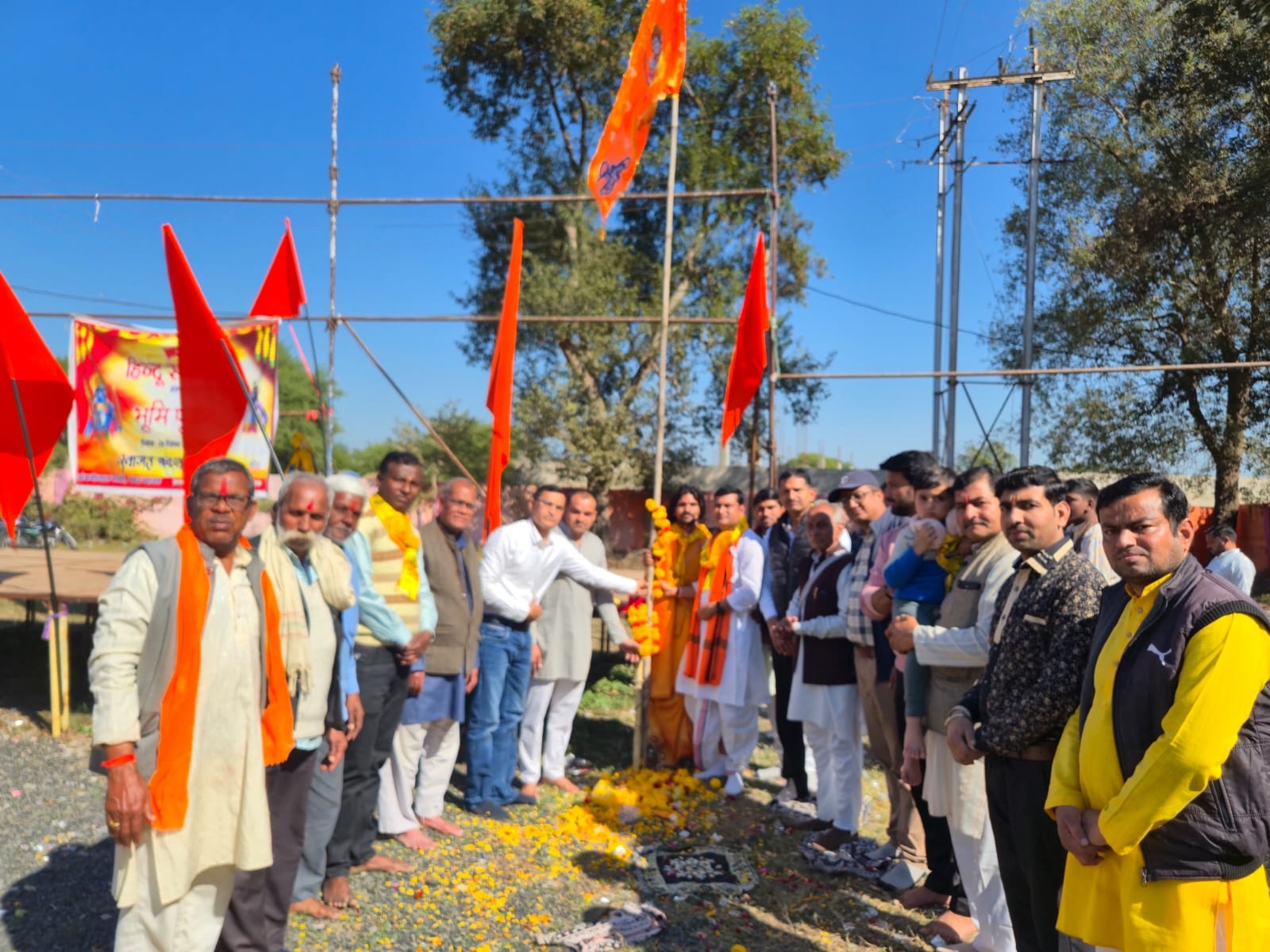 हिन्दू सम्मेलन हेतु सकल हिन्दू समाज द्वारा ध्वज स्थापना एव भूमि पूजन किया