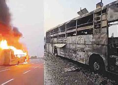 पिता के सामने बेटा-बेटी की मौत, इमरजेंसी गेट नहीं खुला, बिहार से दिल्ली जा रही थी ब्रह्मास्त्र लखनऊ लखनऊ में गुरुवार सुबह चलती एसी बस में आग लग गई। हादसे में 5 यात्रियों की जलकर मौत हो गई। मृतकों में मां-बेटी, भाई-बहन और एक युवक है। बस में करीब 80 यात्री थे। स्लीपर बस बिहार के बेगुसराय से दिल्ली जा रही थी। हादसा सुबह 4.40 बजे आउटर रिंग रोड (किसान पथ) पर मोहनलालगंज के पास हुआ। उस वक्त ज्यादातर यात्री सो रहे थे। यात्रियों ने बताया कि बस में अचानक…