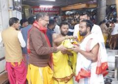 उज्जैन।श विश्व प्रसिद्ध श्री महाकालेश्वर मंदिर में उत्तराखंड के पूर्व मुख्यमंत्री विजय बहुगुणा और फिल्म अभिनेता राज अर्जुन ने अपने परिवार के साथ दर्शन किए। ये सभी वीआईपी दर्शन के लिए उज्जैन पहुंचे थे।संध्या आरती के दौरान, पूर्व मुख्यमंत्री विजय बहुगुणा और उत्तराखंड सरकार के कैबिनेट मंत्री सौरभ बहुगुणा ने सपरिवार के साथ भगवान महाकाल का नंदी हॉल से आशीर्वाद लिया। दर्शन के बाद मंत्री सौरभ बहुगुणा ने कहा कि उन्हें बाबा महाकाल के अद्भुत और दिव्य दर्शन हुए हैं। उन्होंने सभी के जीवन में सुख, समृद्धि और शांति की…